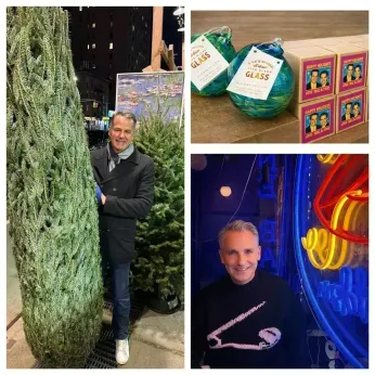 When we returned home afterward, we were thrilled to find that the Christmas gifts for our family and closest friends had arrived: stunning hand-blown glass ornaments from Glass Eye Studio in Seattle, designed by Piper O’Neill and crafted by the studio’s artisan team. Each ornament came with an artistic sketch and arrived nestled in a beautiful keepsake box. Piper’s husband, Billy, had thoughtfully selected a photo of Eric and me from nearly thirty years ago to feature on the packaging. It may have been the coolest gift we’ve ever given.