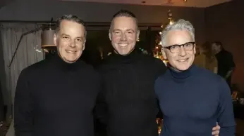 The next few days were a whirlwind. Eric and I started the following evening at Room & Board, the furniture store just down the street from our Chelsea apartment, where the HRC Greater New York Federal Club was hosting its holiday party. We brought our friend Aleks Zestali—the designer behind my sequined Aspen parka and an equally dazzling lineup of sequined swimwear—who joined us earlier in the night so we could gallivant together.